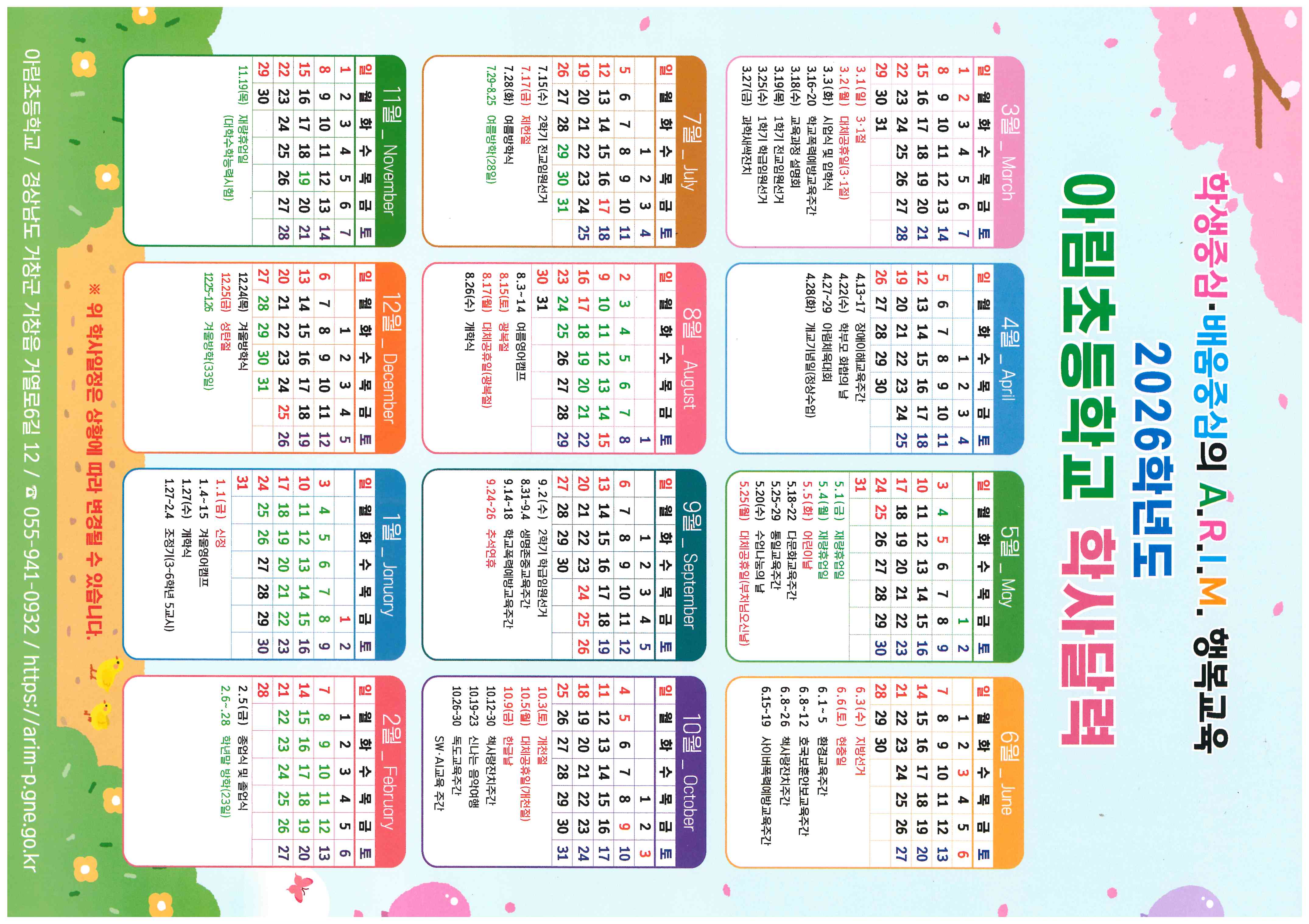 2026학년도 아림초등학교 학사달력