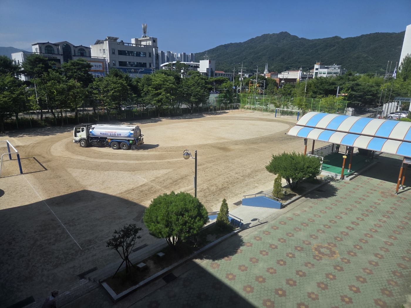 거창군 살수차 지원으로 아림초 폭염 대비